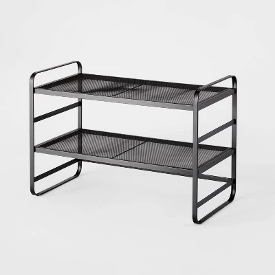 Keep shoes off the floor and your entryway uncluttered with the 2-Tier Metal Mesh Shoe Rack from Brightroom™. This ground freestanding shoe organizer is a great pick for keeping any space organized, but it’s particularly convenient for a closet, entryway or mudroom. The two shelves are perfectly sized to each hold a few pairs of shoes, and the durable metal frame allows for lasting use. The rack includes an adjustable shelf and is easy to assemble with the included hardware, and the mesh shelves provide airflow to help dry and deodorize shoes. Best of all, the rack comes in a neutral hue that easily coordinates with any décor theme.
