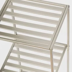 Add a functional and stylish accent to your entryway, living room, or home office decor with this Small Space Storage Metal Cabinet from Brightroom™. Crafted from metal in a brushed nickel finish for a stylish look, this universal storage cabinet’s clean-lined silhouette and sleek design complement a variety of furniture styles and color palettes. Plus, the multiple open shelves provide a perfect platform for displaying framed photos, potted plants, accent lamps or other decorative items.